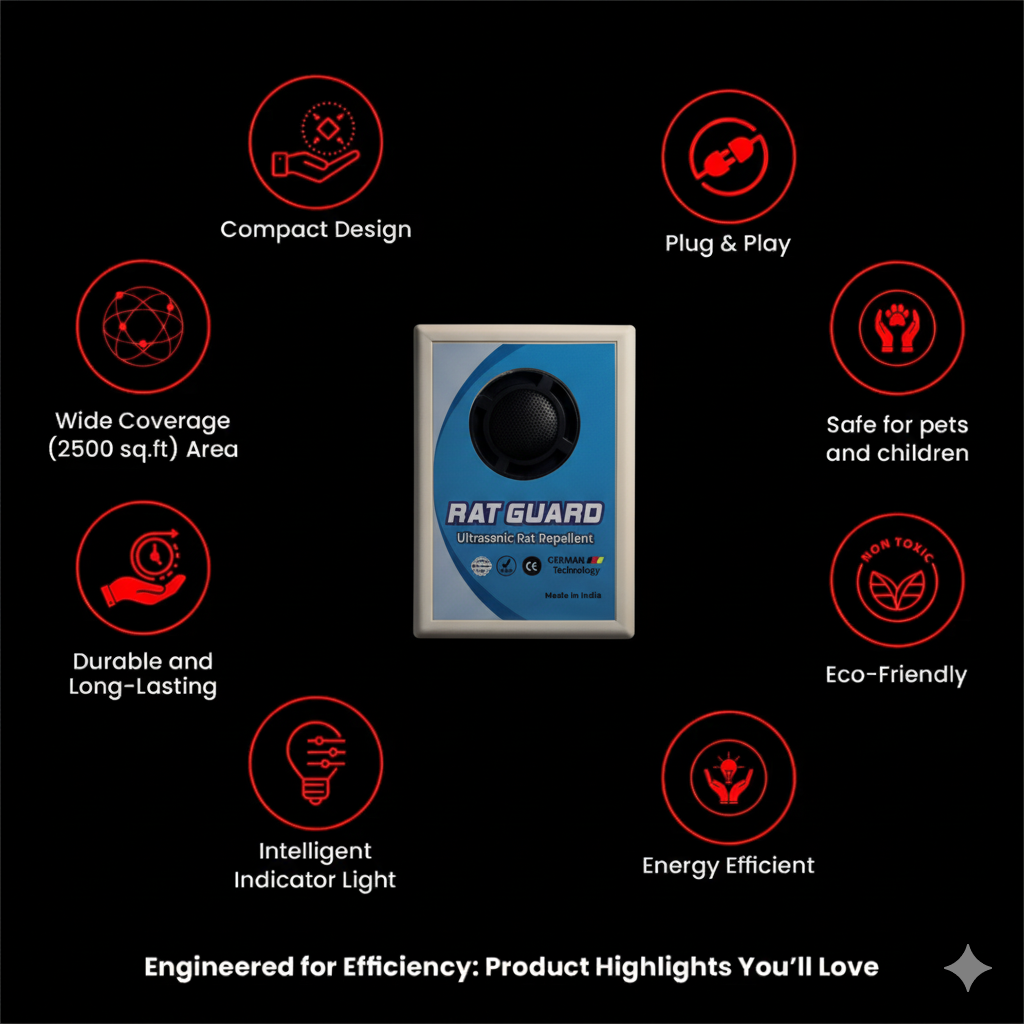 Protect your home, business, or farm with Rat Guard Ultrasonic Rat Repellent System – the safe, silent, and smart way to stay rodent-free.