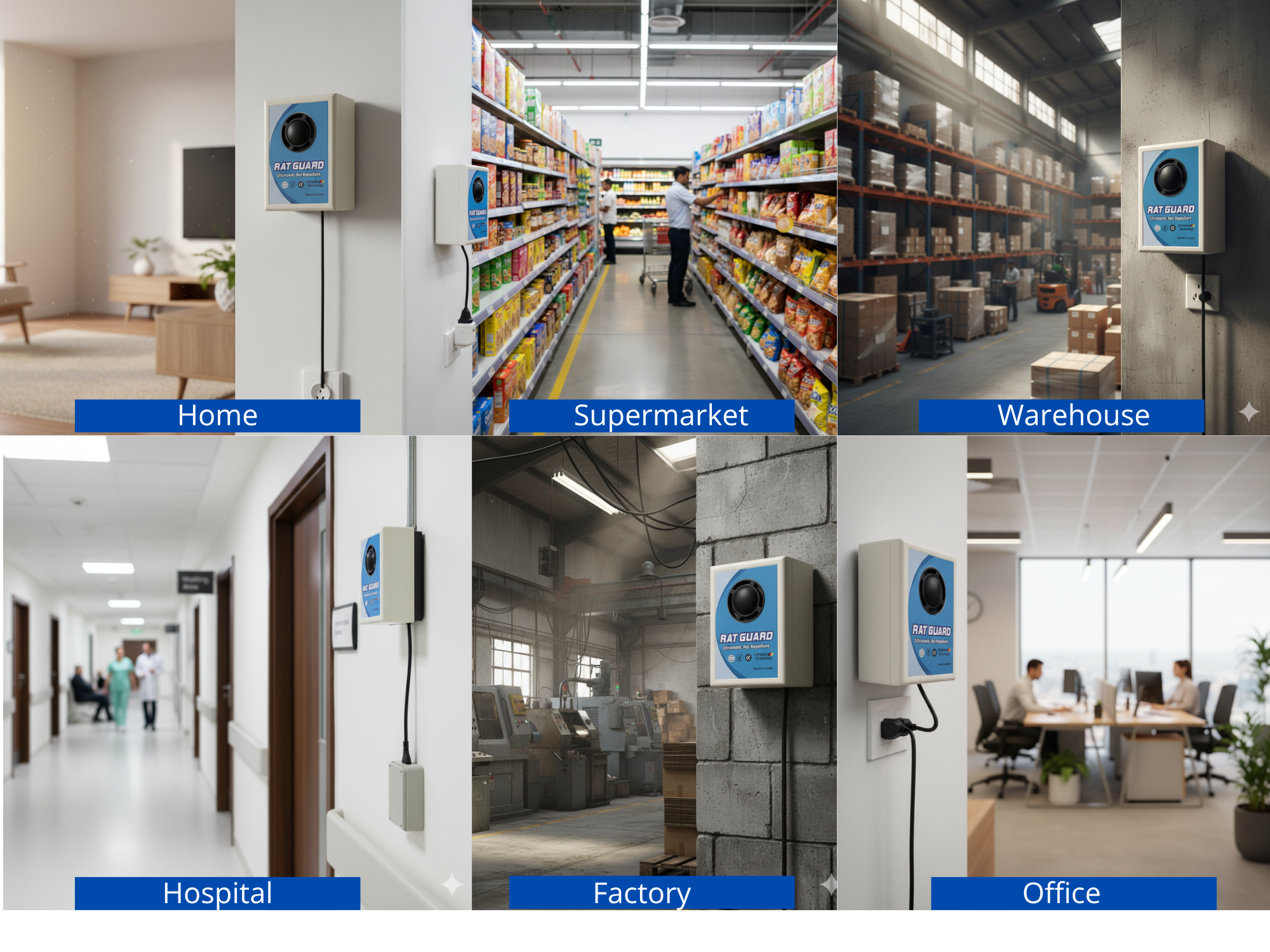 🏭 Factories & Workshops – Prevent electrical or machinery damage caused by rats.